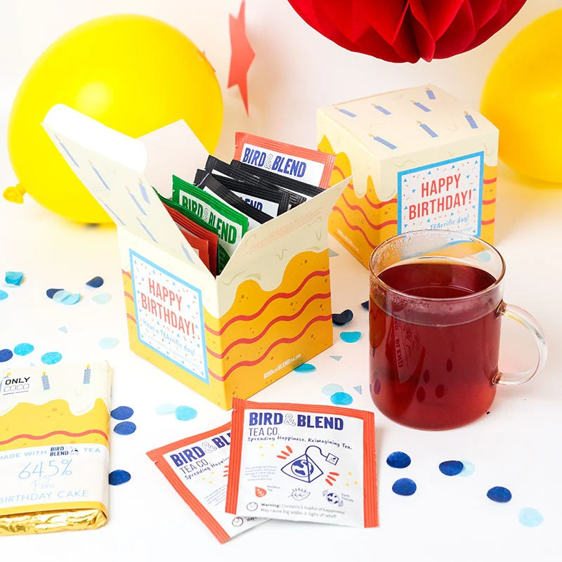 Containing 12 individually wrapped tea bags in a selection of our best-selling fan fave teas, including the star of the show…our super delicious Birthday Cake tea (think Vanilla sponge, notes of sweet icing & cake sprinkles)!
