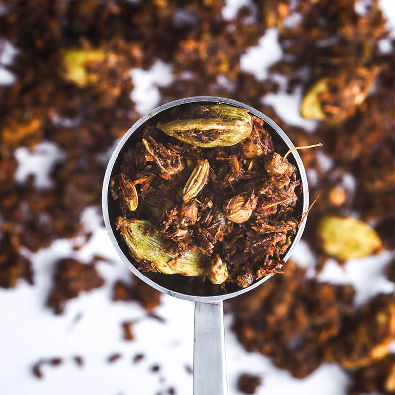 Lightly spiced gingerbread sticky chai, made with freshly ground spices & wildflower honey.