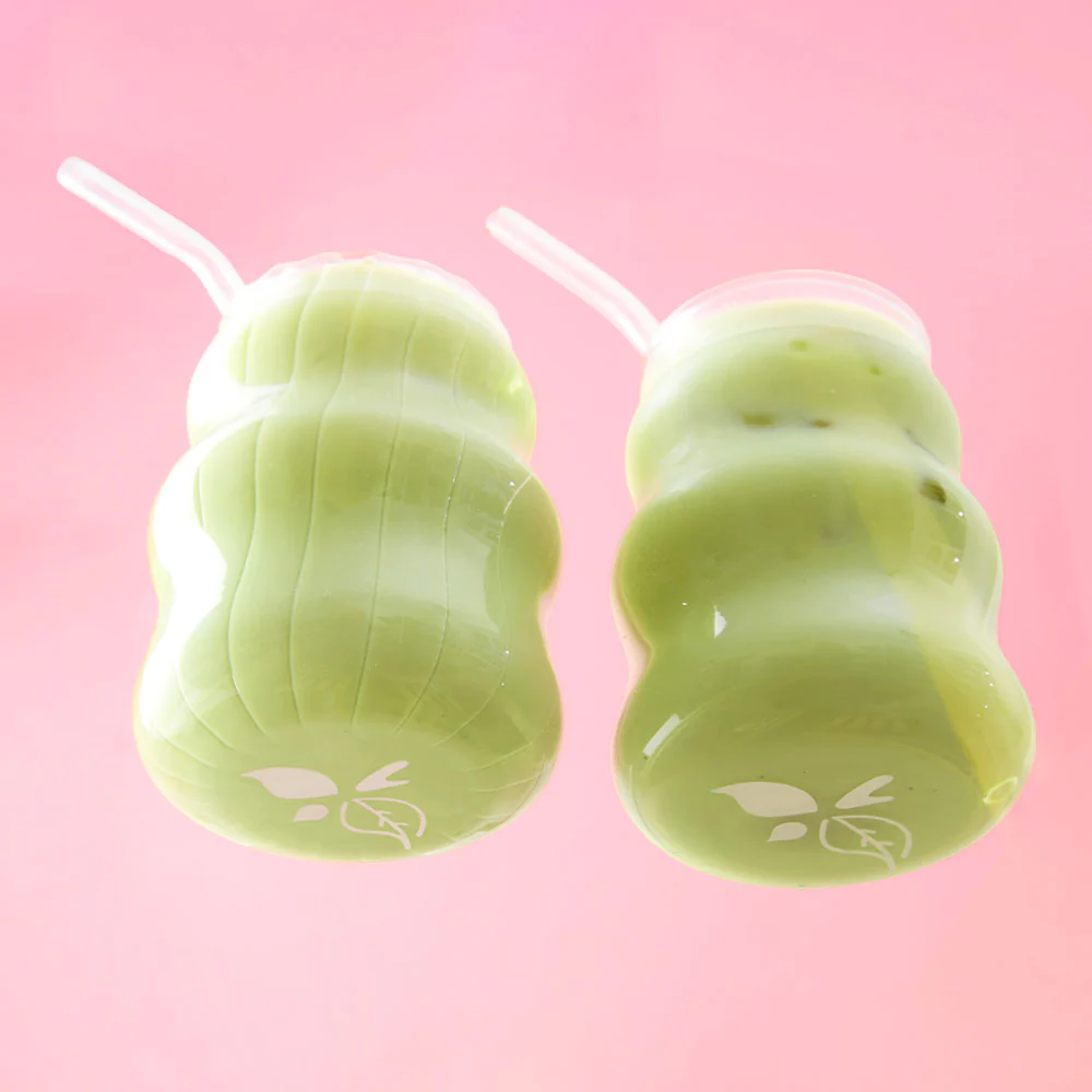 Sip in style with this set of two groovy glasses, perfect for iced matcha lattes & cold brew creations alike! Includes two glasses, both with a fun ripple shape in smooth & ribbed glass, along with a glass straw & handy straw cleaner.